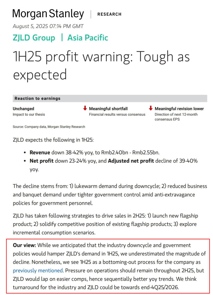 摩根士丹利研报认为,上半年是珍酒李渡的触底阶段,回暖行情有望在今年四季度或2026年出现,给予“增持”评级。浙商证券研报认为,大珍凭借模式和营销创新,已成为现象级产品,有望成为公司全新增长极。